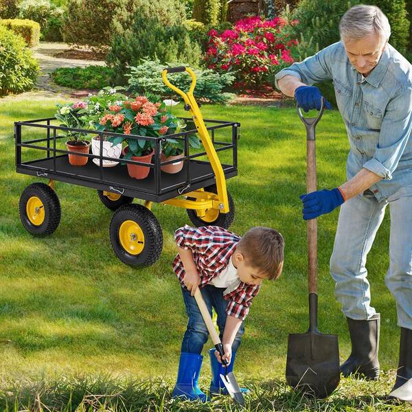 Utility 13.25 cu. ft. Garden Wagon Metal Outdoor Platform Garden Cart w/4 Removable Side Panels 13 in. Wheels