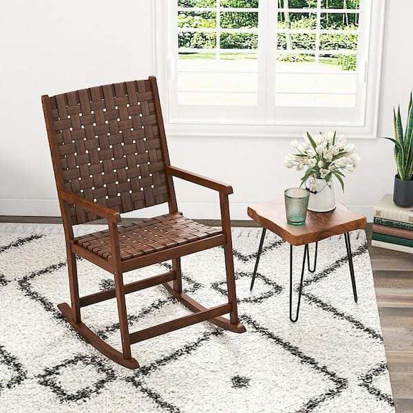 Wood Outdoor Rocking Chair with PU Seat and Rubber Wood Frame Safe and Smooth Rocking Motion
