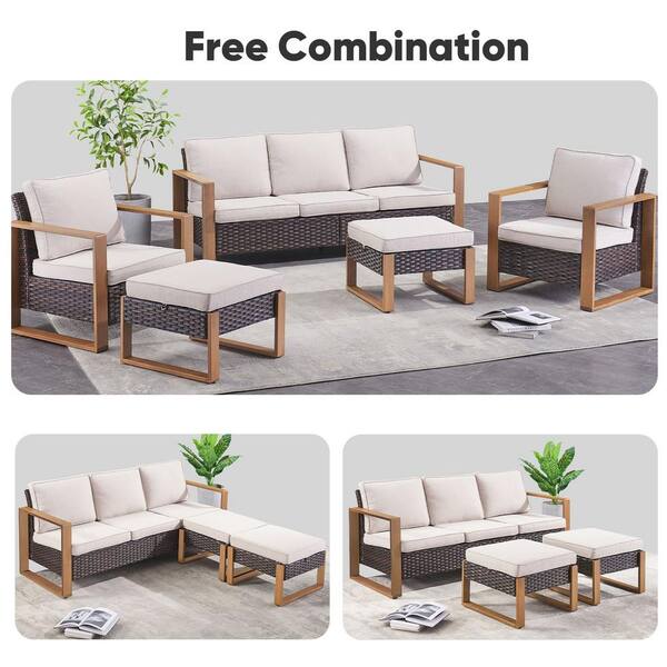 Allcot Brown Wicker Outdoor 3-Seat Sofa Couch with Deep Seating and Beige Cushions