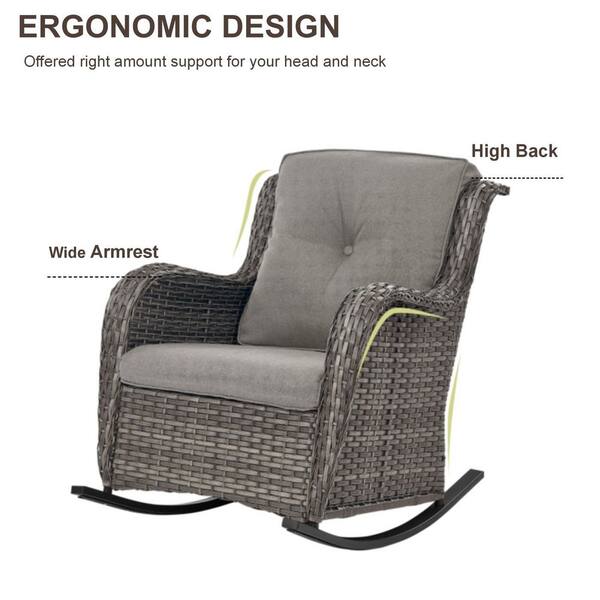 Carlos 4-Piece Gray Wicker Patio Conversation Set with Rocking Chairs, Outdoor Sofa Seating Set with Gray Cushions