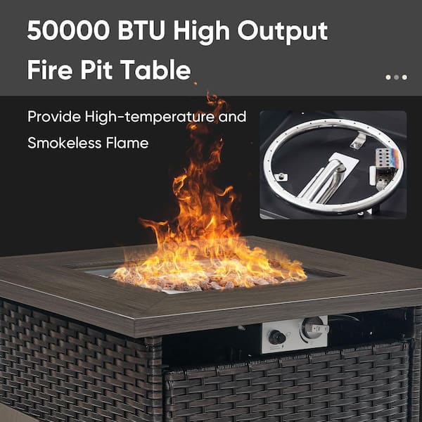 Carlos 5-Piece Wicker Patio Conversation Set with Armchair, Firepit and Gray Cushions