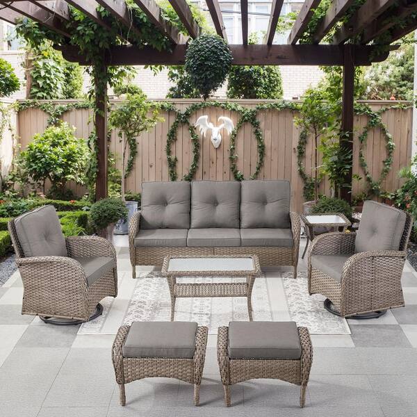 Carlos 7-Piece Gray Wicker Outdoor Sofa set Patio Conversation Set with Gray Olefin Cushions