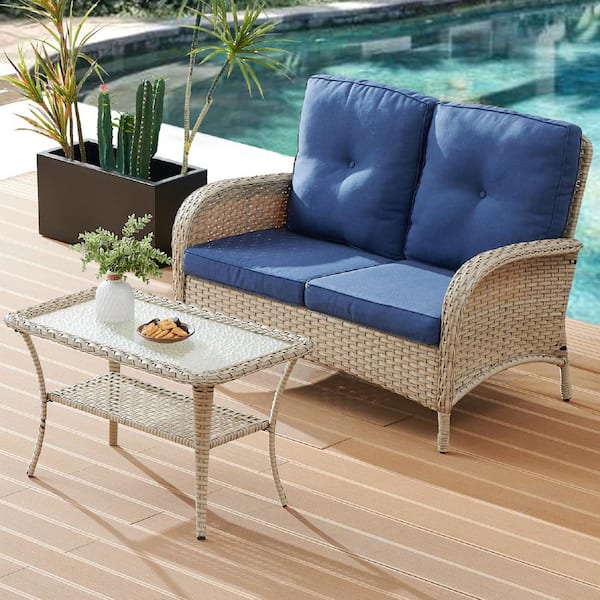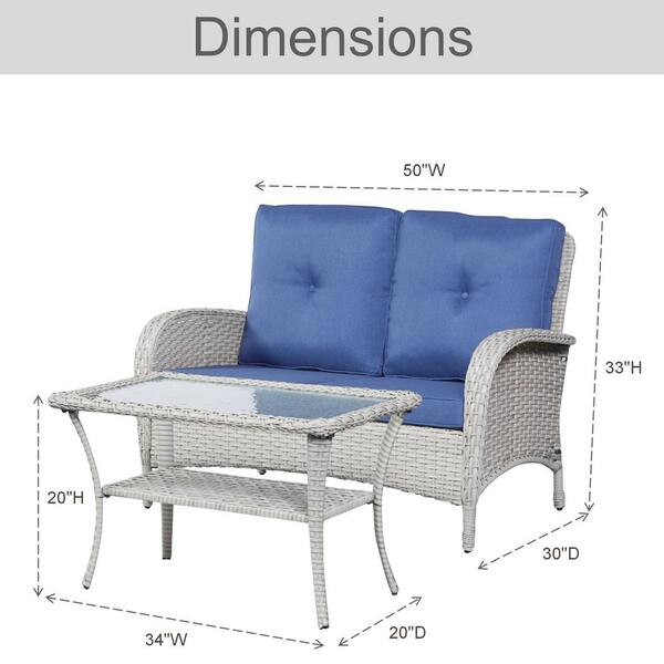 Carlos Grey 2-Piece Wicker Patio Conversation Set with Blue Cushions