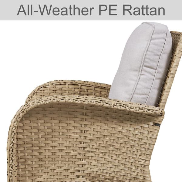 Carlos Natural 3-Pieces Wicker Patio Conversation Set with Off White Cushions