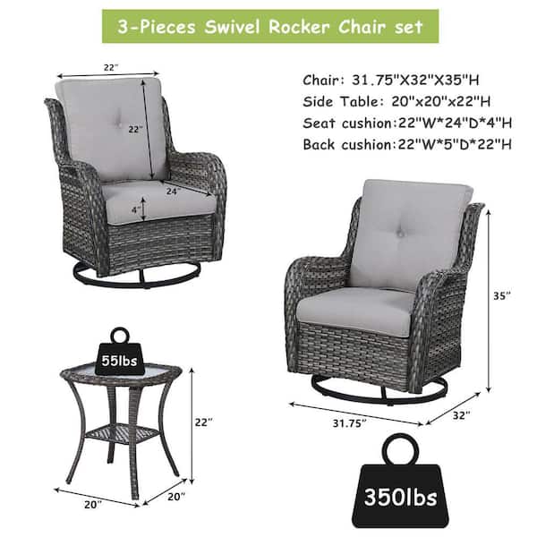 Carolina 3-Piece Wicker Patio Conversation Set with Gray Cushions