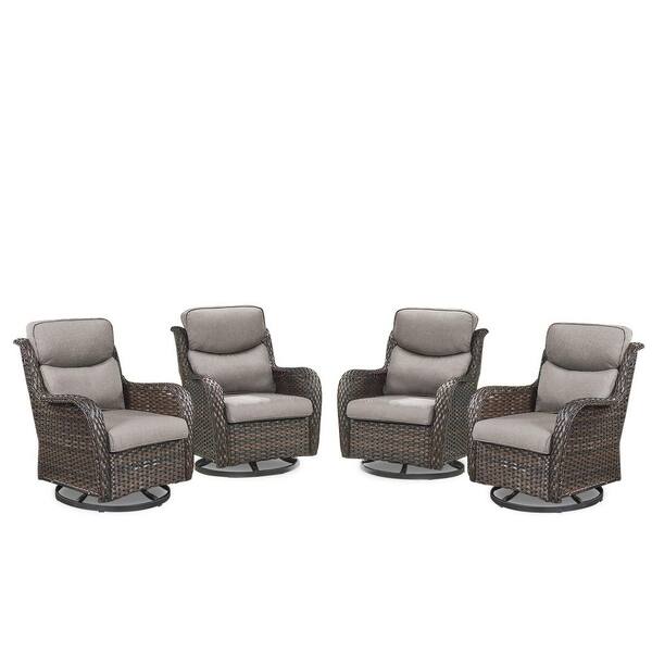 Carolina 4-Piece Brown Wicker Outdoor Swivel Glider Chairs with Thick Gray Cushion