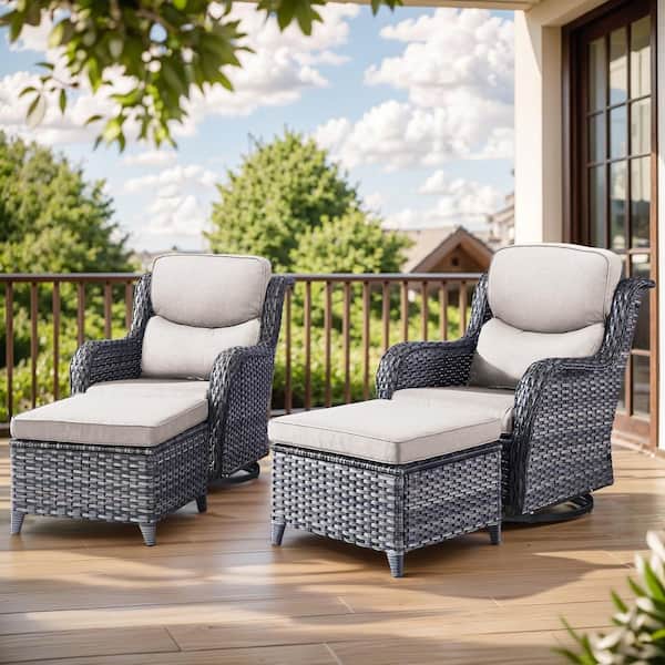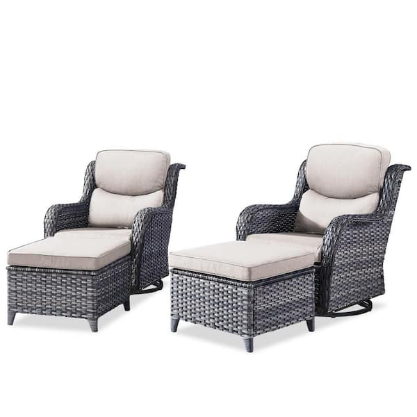 Carolina 4-Piece Gray Wicker Outdoor Swivel Glider Chairs with Thick Beige Cushion