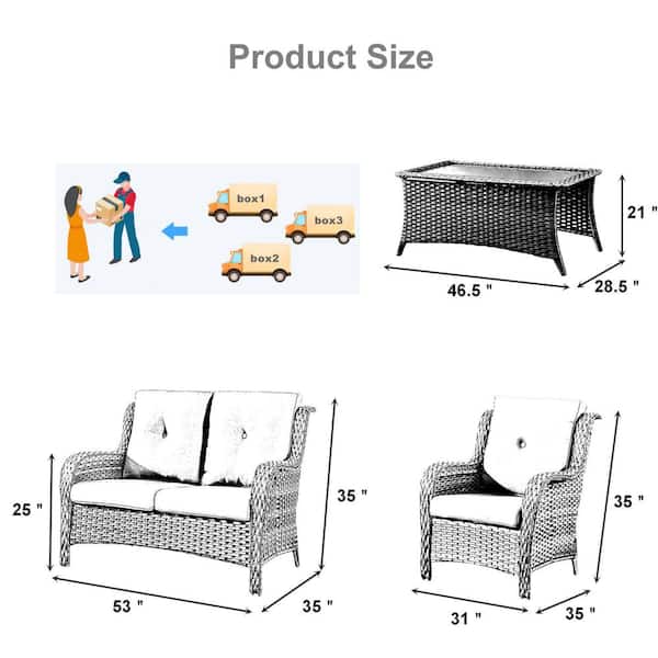 Carolina 4-Piece Wicker Patio Conversation Set with Blue Cushions