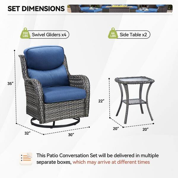 Carolina Outdoor 6-Piece Wicker Patio Conversation Set with 2-Side Tables, with Blue Cushions