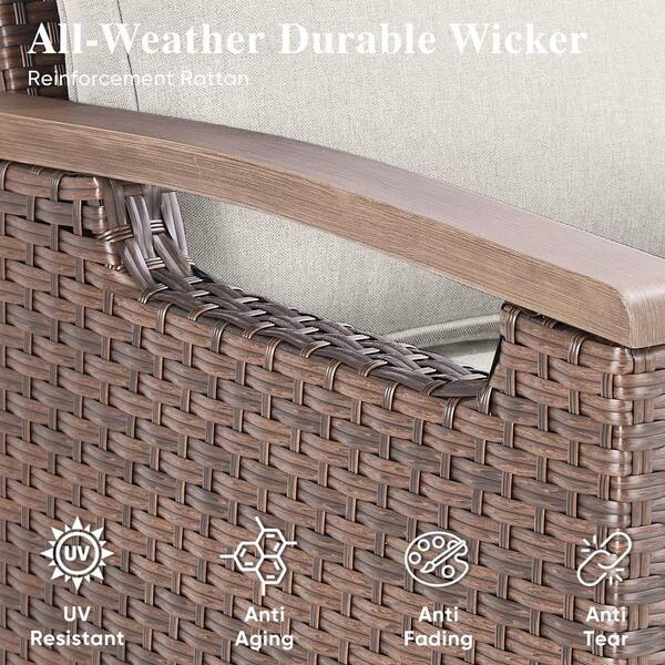 Kelsey Beige 4-Piece Brown Wicker Patio Conversation Seating Sofa Set with Swivel Rocking Chairs