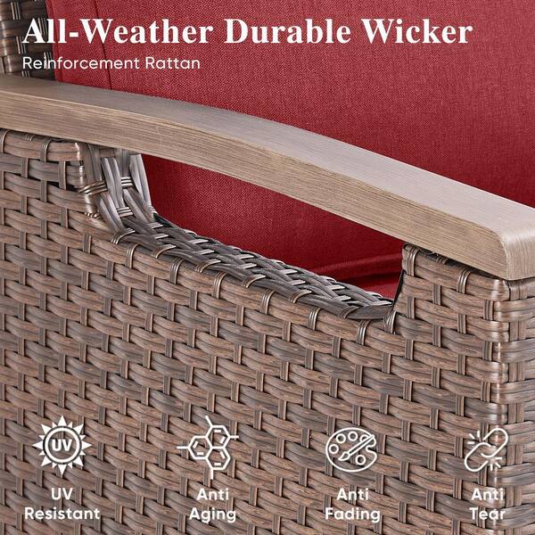 Kelsey Red 4-Piece Brown Wicker Patio Conversation Seating Sofa Set with Swivel Rocking Chairs