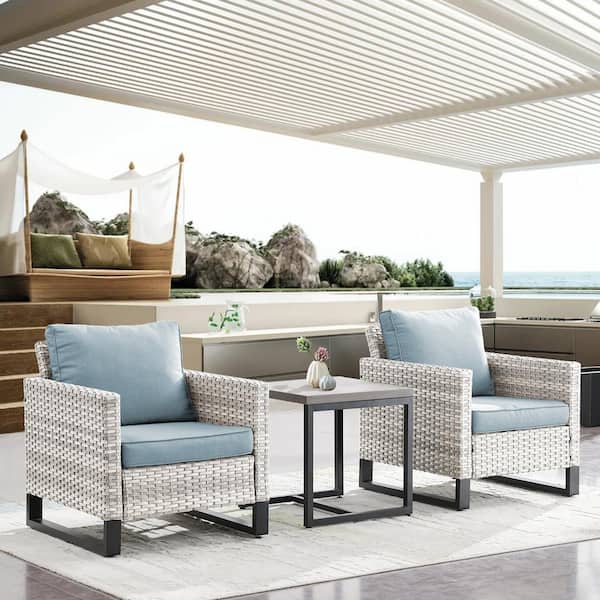 Valenta 3-Piece Wicker Patio Conversaion Set with CushionGuard baby blue Cushions