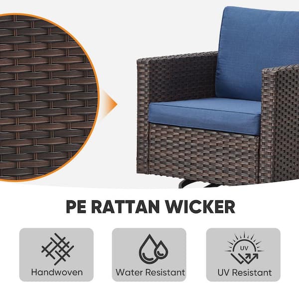 Valenta Brown 7-Piece Wicker PatioConversation Sectional Seating Set with Blue Cushions