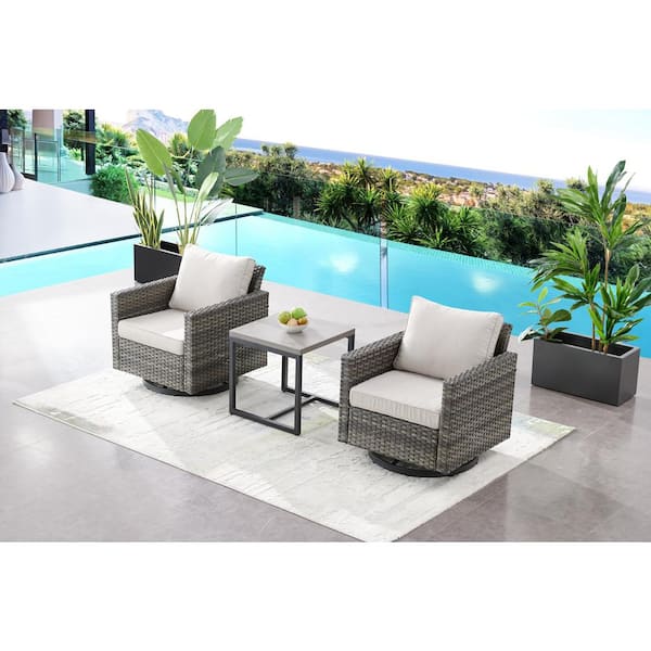 Valenta Gray Wicker 3-Piece Patio Conversation Set with Beige Cushions