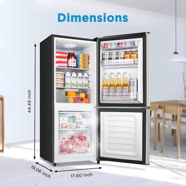 17.6 in. 4 cu.ft. Mini Refrigerator in Silver with Bottom Door Freezer, Manual Defrost