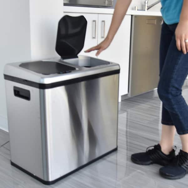 16 Gal. / 61 Liter Stainless Steel SoftStep Dual Compartment Household Metal Trash Can and Recycle Bin
