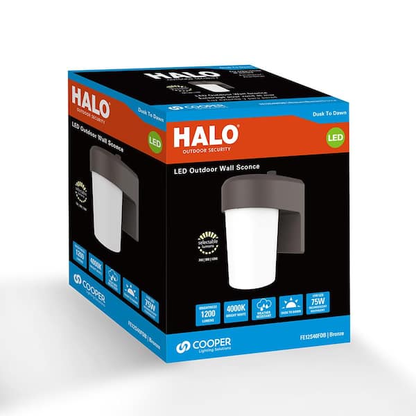 FE 1-Light Bronze LED Outdoor Lantern Sconce with Dusk to Dawn