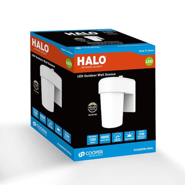 FE 1-Light White LED Outdoor Lantern Sconce with Dusk to Dawn