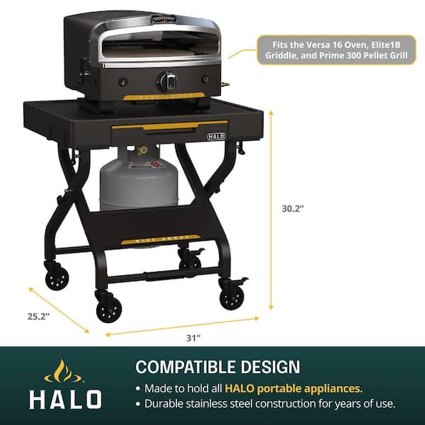 • Securely lock 20 lb. propane tank for stable, safe cooking.