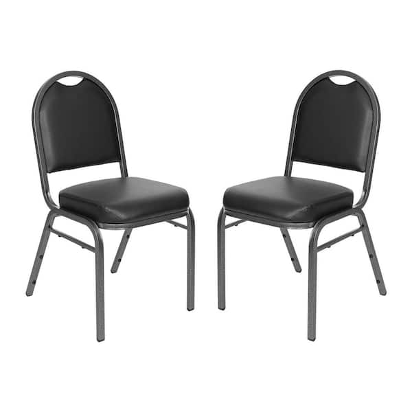 Celia Collection Plush Vinyl Padded Stackable Banquet Chair, Black/Silvervein Frame, (Pack of 2)