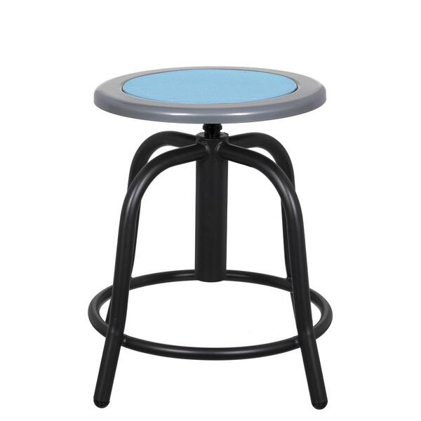 Vince Collection 18-25 in. Adjustable Height, Black Metal Frame, Metal Swivel Stool, Light Blue Seat