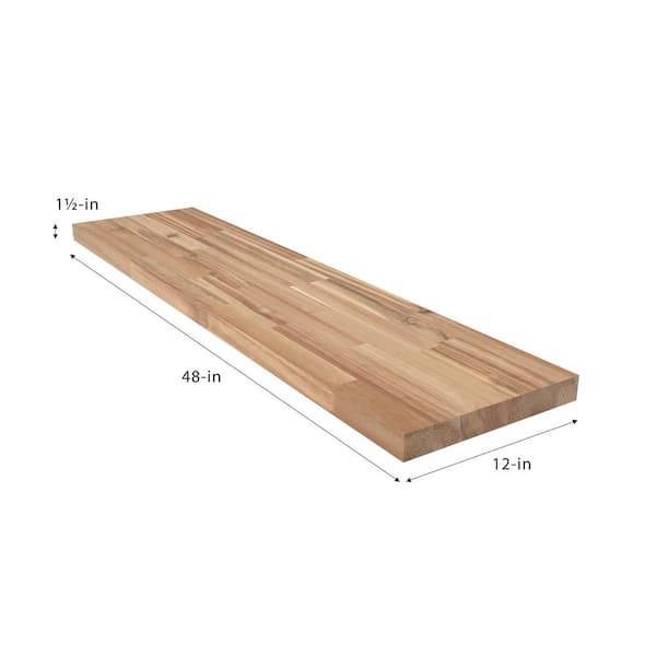 Solid Wood Butcher Block Shelf 48in. W X 12in. D X 1.5in. H in Unfinished Acacia