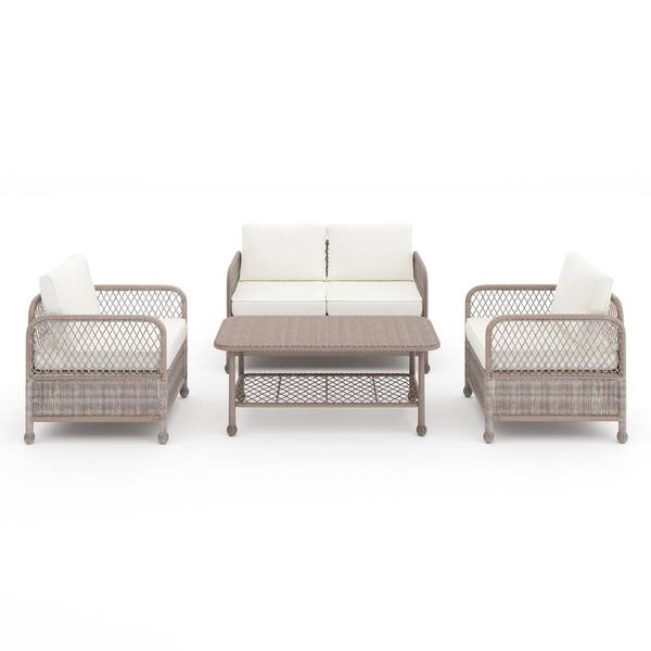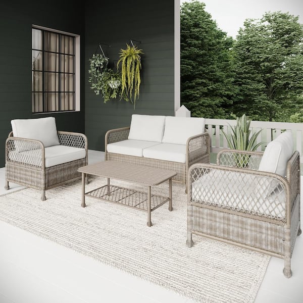 Carmel 4-Piece Aluminum Frame Resin Wicker Outdoor Loveseat Set with Linen Cushions