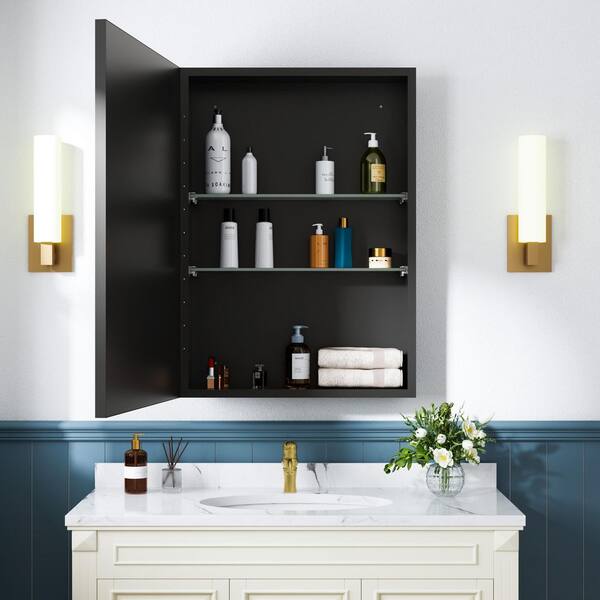 20 in. W x 28 in. H Rectangular Iron Medicine Cabinet with Mirror and Adjustable Shelves, Recessed or Surface Mount