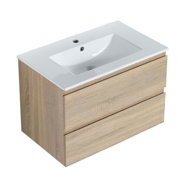 30 in. W x 18.3 in. D x 20.5 in. H Bath Vanity in Light Brown with White Granite Top