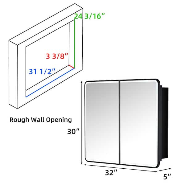 32 in. W x 30 in. H Rectangular Iron Recessed/Surface Mount Medicine Cabinet with Mirror, Anti-Fog, Memory, Black