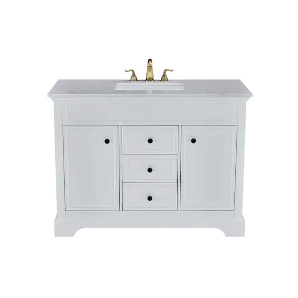 48 in. Freestanding White Bath Vanity with White Carrara Marble Top Assembled