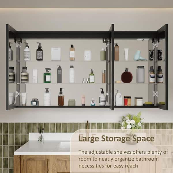 Amelia 60 in. W x 32 in. H Rectangular Aluminum Medicine Cabinet with Mirror, Adjustable Shelf, Dimmable Light, Anti-Fog