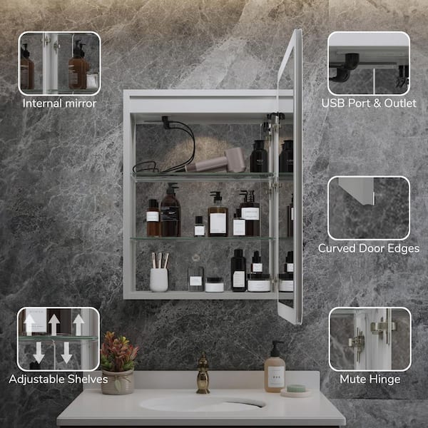 Artemis 24 in. W x 30 in. H Small Rectangular Aluminum Rounded Edge Dimmable Medicine Cabinet with Mirror, Right Hinge