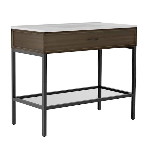 Arya 36 in. W Freestanding Single Sink White Bath Vanity with White Solid Surface Top and Black Legs