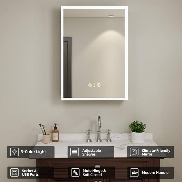 Cloris 20 in. W x 28 in. H Rectangular Aluminum Black Medicine Cabinet with Mirror and Light, Left Hinge