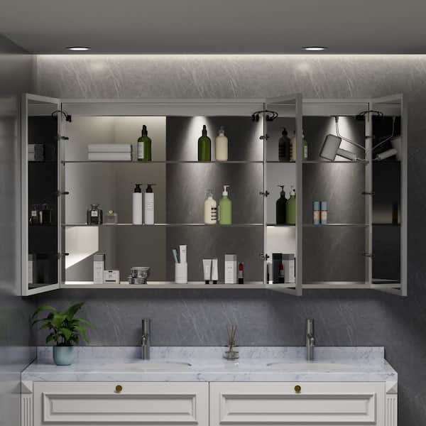 Eos 60 in. W x 36 in. H Rectangular Aluminum Surface/Recessed Medicine Cabinet with Mirror and Light, Fog Free