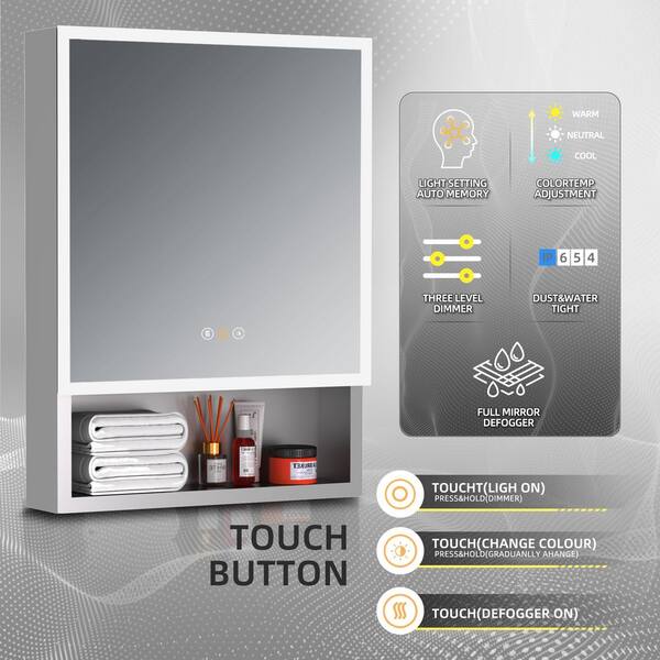 Eros 20 in. W x 28 in. H Small Rectangular Aluminum LED Dimmable Defogging Medicine Cabinet with Mirror, Left Hinge
