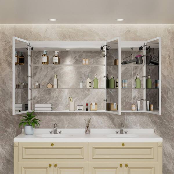 Rina 60 in. W x 36 in. H Rectangular Aluminum Recessed Medicine Cabinet with Mirror, Dimmable, Fog Free for Bathroom