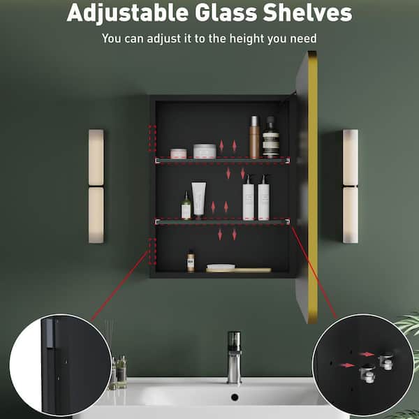 Thalia 16 in. W x 28 in. H Rectangular Iron Small LED Defogging Medicine Cabinet with Mirror, Gold, Right Hinge
