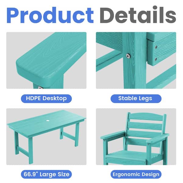 HDPE 7-Piece Plastic Rectangle Standard Height Outdoor Dining Set in Aruba Blue