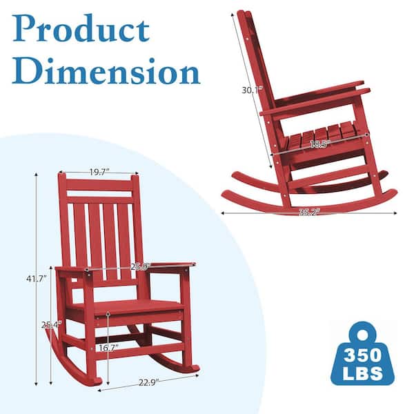 HDPE Dark Red Adirondack Rocking Chair (1-Pack)