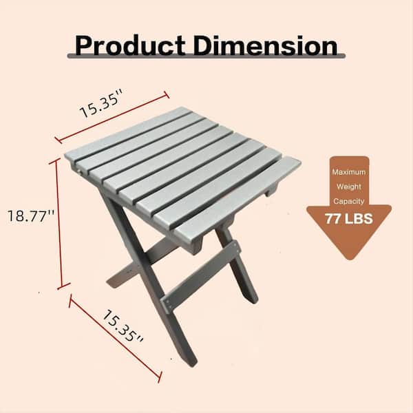 HDPE Outdoor Side Table Small End Square Table Folding Coffee Furniture for Patio, Garden, Pool, Outside Portable Grey