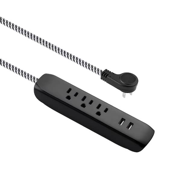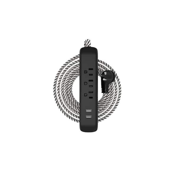 15 ft. 16/3 3 Outlet, 2 USB Braided Extension Cord in Black and White