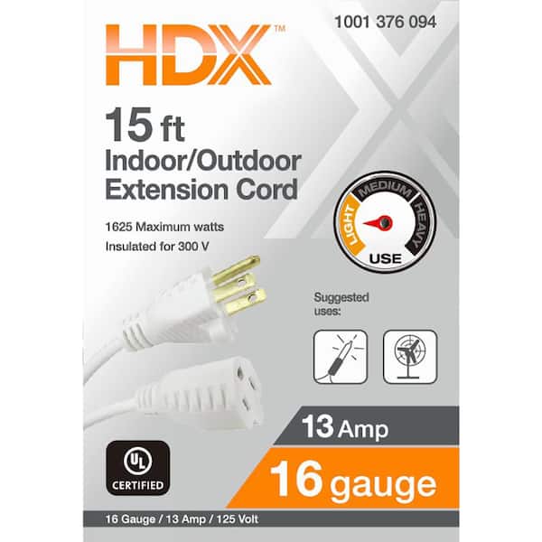 15 ft. 16/3 Light Duty Indoor/Outdoor Extension Cord, White