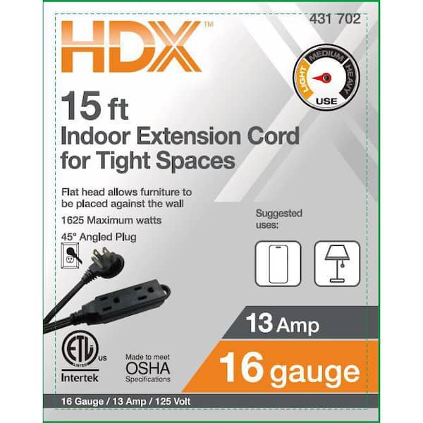• Light duty extension cord for indoor home or office use