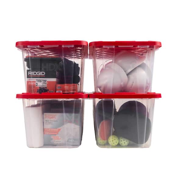 27 Gal. Tough Storage Tote in Clear with Red Lid (4-Pack)