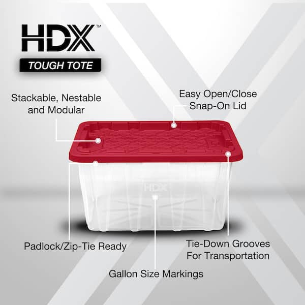 27 Gal. Tough Storage Tote in Clear with Red Lid