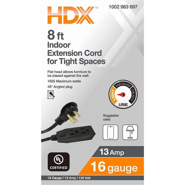8 ft. 16/3 Light Duty Indoor Tight Space Multi-Outlet Extension Cord with Banana Tap, Black