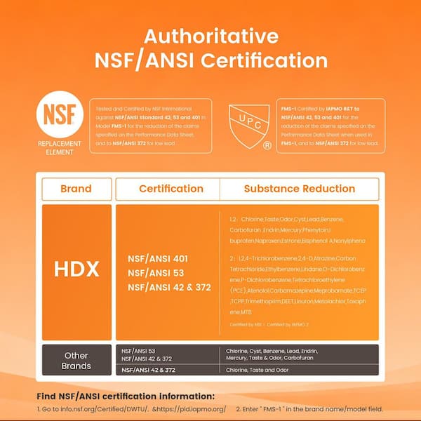 • NSF certified to reduce lead, chlorine, fluoride and more