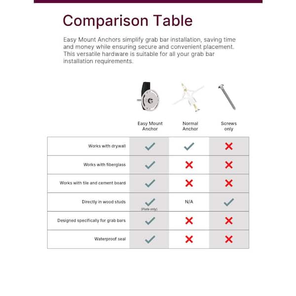 Easy-Mount Wall Anchor 3.5 in. for Securing Grab Bars on Drywall and Tile (300 lb. Capacity) in Stainless Steel (2-Pack)
